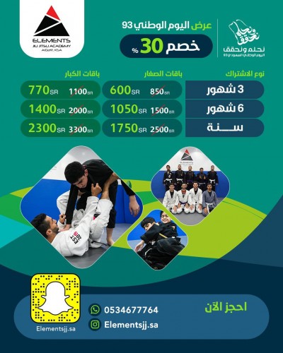”المنت جوجتسو-Elements Jiu Jitsu Academy“ أول نادي لرياضة الجوجتسو في القطيف النادي بإشراف بطل العالم في اللعبة علي منفردي خصم 30 ٪ بمناسبة اليوم الوطني الانستغرام: https://www.instagram.com/elementsjj.sa السناب: ... |