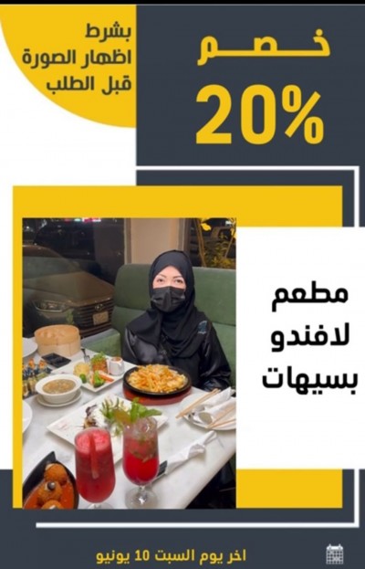 خصم 20% لدى مطعم ”لافندو“ السوشي اللذيذ خصم 20% على كامل الفاتورة حلا وقهوة سعودية العرض ينتهي يوم السبت 10 يونيو 📍 موقعنا : https://maps.app.goo.gl/mf7w4CdihgK5B8H89 ... |