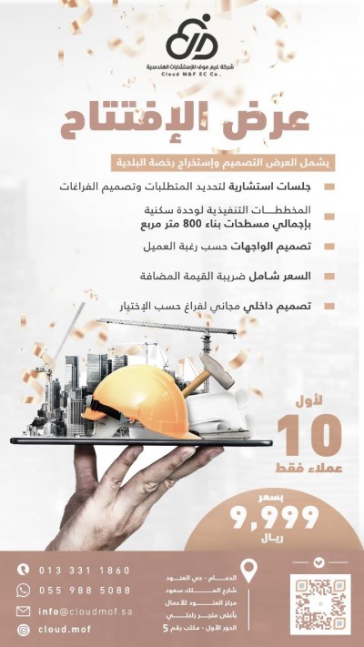 لأول 10 عملاء.. عرض الإفتتاح لتصميم وإصدار رخصة البناء من شركة غيم موف الهندسية