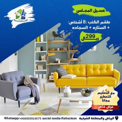 خصم 30% لدى ”شركة راحة كلين“ لتنظيف المنازل والشقق خصم 30% على المنازل والشقق الجديدة غسيل مجلسين والثالث ”مجاناً“ عرض على غسيل ثلاث اطقم كنب بقيمة 499 ريال غسيل المجلس بقيمة 299 ريال للتواصل واتساب https://wsend.co/966565924075 ... |