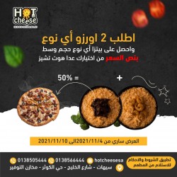 اطلب ”2 اورزو“ أي نوع وأحصل على بيتزا حجم وسط أي نوع عدا هوت تشيز