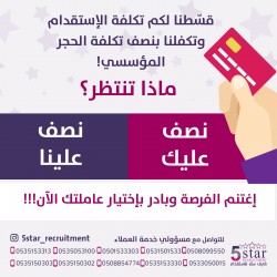 الآن بإمكانك تقسيط تكلفة استقدام عاملتك من ”فايف ستار“ والدفع الإلكتروني عبر منصة مساند.