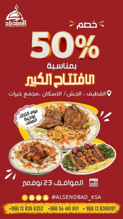 الليلة.. خصم 50% على أطباق العشاء في السندباد