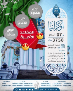 العرض المميز لأوكرانيا / بدون تأشيرة دخول ”مع الديري غير“ الديري للسفر والسياحة للمزيد من المعلومات عن رحلاتنا مكتب الاحساء في الطرف والهفوف 0566713235 0582820882 سيهات ... |
