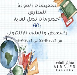 عروض العودة إلى المدارس من صالة الماجد للمفروشات تخفيضات تصل لغاية 60 % تسوق معنا من معرضنا او عبر المتجر الإلكتروني من 22/08/2021 ولغاية 04/09/2021 عملائنا الكرام يسرنا استقبال طلباتكم عبر موقعنا الإلكتروني https://almajedgallery.com يمكنكم متابعتنا والإطلاع على كل جديد عبر حسابنا بالانستقرام ... |