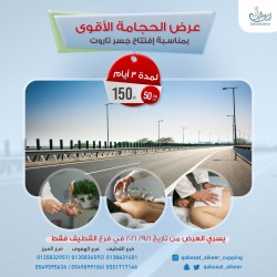 خصومات مميزة في ”قبسات الخير للحجامة“ 150 ريال لمدة 3 أيام.. حاصل على ترخيص من وزارة الصحة والمركز الوطني للطب البديل وتحت إشراف مجموعة طبية ذات خبرة تتجاوز العشر سنوات. قسم خاص للرجال وقسم خاص للنساء. أرقام التواصل: 0138631401 0551717146 الانستغرام: ... |