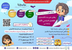 مركز عين لضيافة الأطفال التابع لجمعية مضر الخيرية بالقديح يعلن عن برامجه الصيفية التعليمية والترفيهية، مع اتخاذ كافة الإحترازات الوقائية ضد فيروس كورونا. 1 - برنامج تأسيس اللغة العربية «مستوى أول» من عمر «4 - 5» سنوات 2 - برنامج تأسيس اللغة العربية «مستوى ثاني» من عمر «6 - 7» سنوات 3 - برنامج تأسيس اللغة الإنجليزية من عمر «5 - 7» سنوات ... |