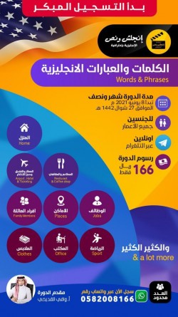 امتلك أضخم حصيلة للغة الإنجليزية من الكلمات والعبارات الشائعة شاهد فيديو الإعلان https://youtu.be/5m_NNzdEYi0 لمن؟ للذكور والإناث الموظفين طلاب الجامعة والكليات ... |