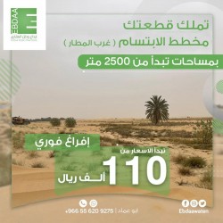 تملك قطعتك بمخطط الابتسام غرب المطار